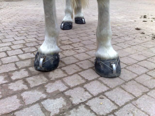 Diese Hufschuhe haben den Vorteil, dass sie sehr leicht sind und keiner langen Eingewöhnungszeit bedürfen (ok, für einen Wanderritt würde ich die auch nicht mal eben 6-8 h für 3 Tage dranbasteln, sondern vorher anfangen und steigern). Ich hab für alle 4 Füße Hufschuhe, weil wenn's ihn dann doch mal zwickt, dann hinten.